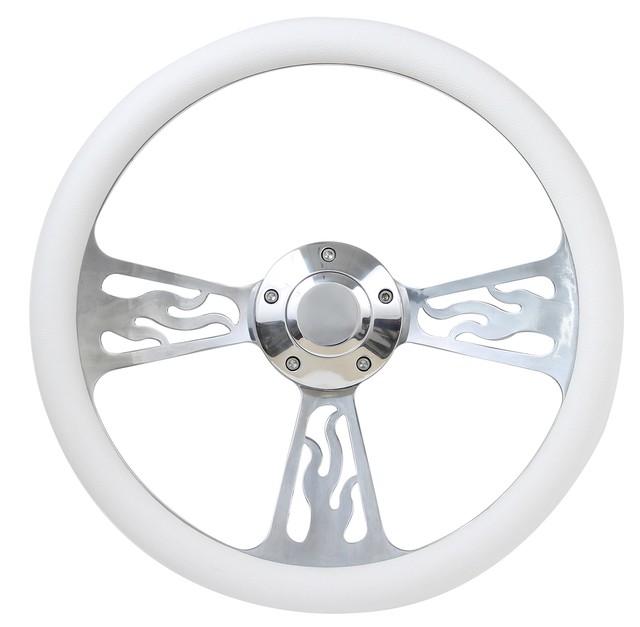 Flame Boat Steering Wheel 14 Inch Aluminum With White